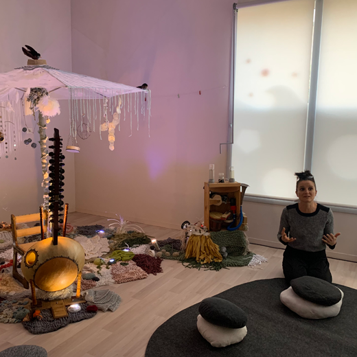 Un moment de douceur partagé en petit comité, adressé à un maximum de 25 enfants par représentation, avec Delphine Noly, qui nous accueille dans un décor inspiré de l'histoire du Facteur Cheval. Accompagnée de sa kora, instrument à cordes, la musicienne nous a plongés dans son univers poétique.
