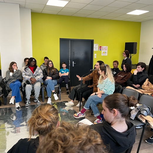 Les représentations ont donné lieu à un échange entre l’équipe artistique et les élèves. Les questions de la scénographie, de la genèse du projet ou encore du temps de création ont pu être abordées.