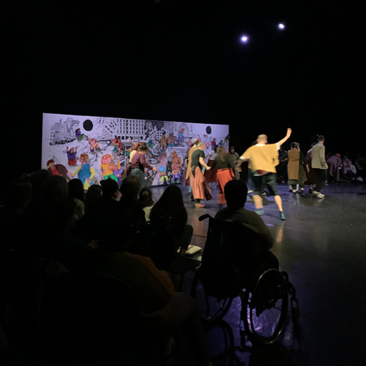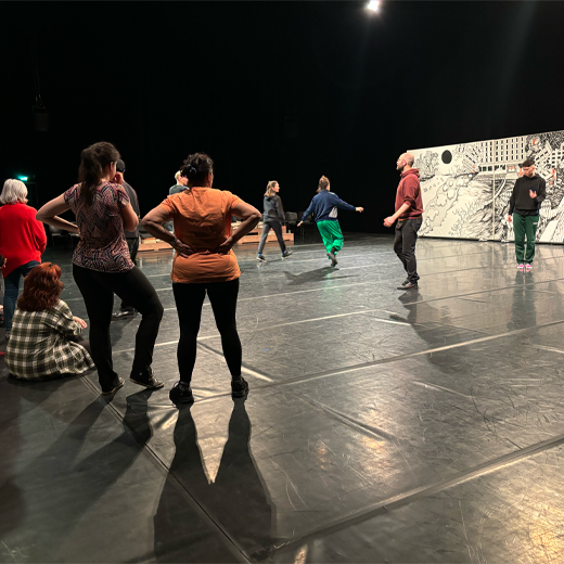 C’est ainsi que 16 participant·e·s adultes de tout âge et de tout niveau, venant de Mâcon et des alentours, se sont retrouvé·e·s sur le plateau du Grand Théâtre pour les deux représentations les 15 et 16 février. Aucun niveau de danse n’étant requis pour participer, chacun·e a pu expérimenter, avec ses aptitudes, l’univers chorégraphique de Vidal, se laissant contaminer progressivement pour entrer dans cette performance joyeuse et libératrice.